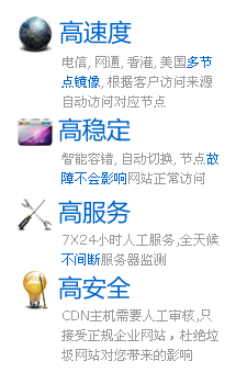 CDN云主机是悦联创想|云建站管理系统最新推出的支持CDN加速的主机产品,主要支持云计算、云存储、云加速、云建站和云管理等功能。 CDN云主机优势说明 高速度:自动在电信、网通、移动、美国、香港等地机房建立镜像缓存服务器,根据访问客户来源,自动访问距离客户最快速服务器,镜像节点与数据中心之间采用BGP高速线路传输,不论客户端是什么网络,均可以全网高速访问。 高稳定:分布式集群架构,避免单点故障,在线率99.999% 。CDN镜像节点智能容错功能,自动切换到备用节点,即使某个或者多个节点死机或机房被封,也毫不影响! 高服务:CDN主机需要人工审核,只接受正规企业网站,杜绝垃圾网站对您带来的影响; 专用服务器,不与普通网站放在一起。专业团队,优先人工服务。个人用户请选择我司其他产品。 高安全:所有机房均采用正规电信机房,所有数据均支持在线备份,即使原硬盘损坏,也可以比较容易找回网站数据。 CDN云主机与传统虚拟主机功能对比 传统的虚拟主机都是单台服务器,一旦机器硬件损坏、IP被封、机房网络故障等,都将导致网站不能访问,严重的情况数据还无法及时取回,即使想换一家服务商也因为没有数据而无能为力。同时传统虚拟主机还存在跨网访问慢的问题,网通用户访问电信服务器速度慢等等... |